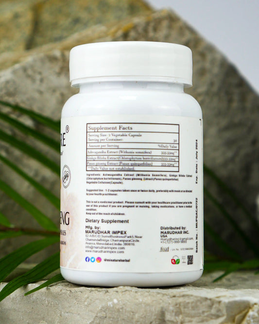 Panax Ginseng, Asvaganda i Ginko MIX(1000mg dnevna doza u 2 kaps);Višestruki efekti : energija, fokus, otpornost na stres, hormonska podrška.pomže boljem snu