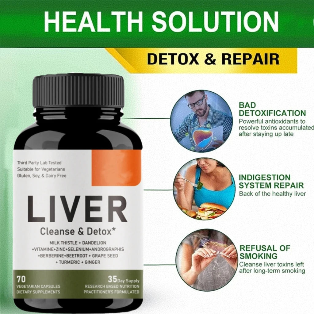 Formula za čišćenje, detoksikaciju i oporavak jetre - biljni dodatak prehrani za podršku jetri s mliječnim čičkom i korijenom Maslačka, kurkumom za zdravlje jetre 70 kapsula;